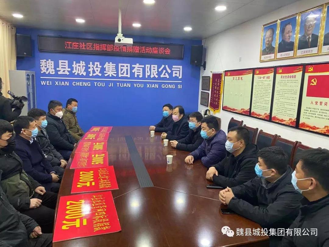為抗擊新型冠狀病毒感染的肺炎疫情,2月6號下午,城投公司舉辦江莊社區(qū)指揮部愛心捐贈活動。政府副縣長王勇同志、政府辦研究室主任李剛同志、城投公司領(lǐng)導(dǎo)班子和各捐款企業(yè)代表出席捐贈活動。