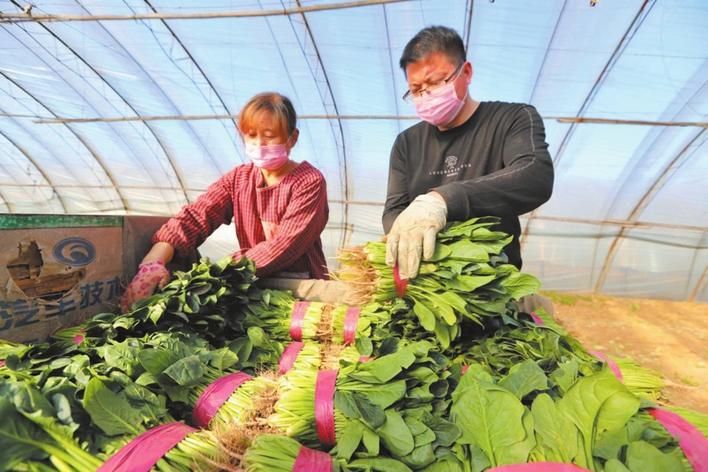 魏縣德政鎮(zhèn)鮮蔬小鎮(zhèn)后西營村群眾正在收獲菠菜。 蒿保平攝