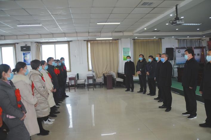 2月15日,魏縣首批10名馳援湖北武漢醫(yī)療隊(duì)員出征。市委常委、縣委書記盧健,政府縣長樊中 青等到魏縣人民醫(yī)院為大家壯行。 安志達(dá)攝
