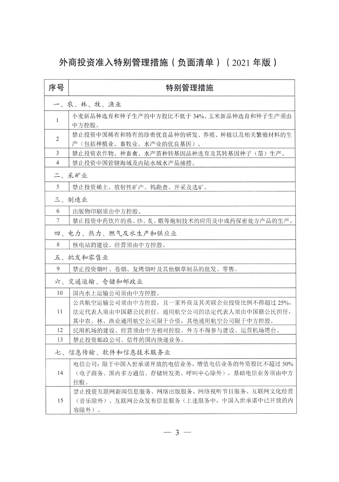 名稱(chēng):外商投資準(zhǔn)入特別管理措施(負(fù)面清單)(2021年版)