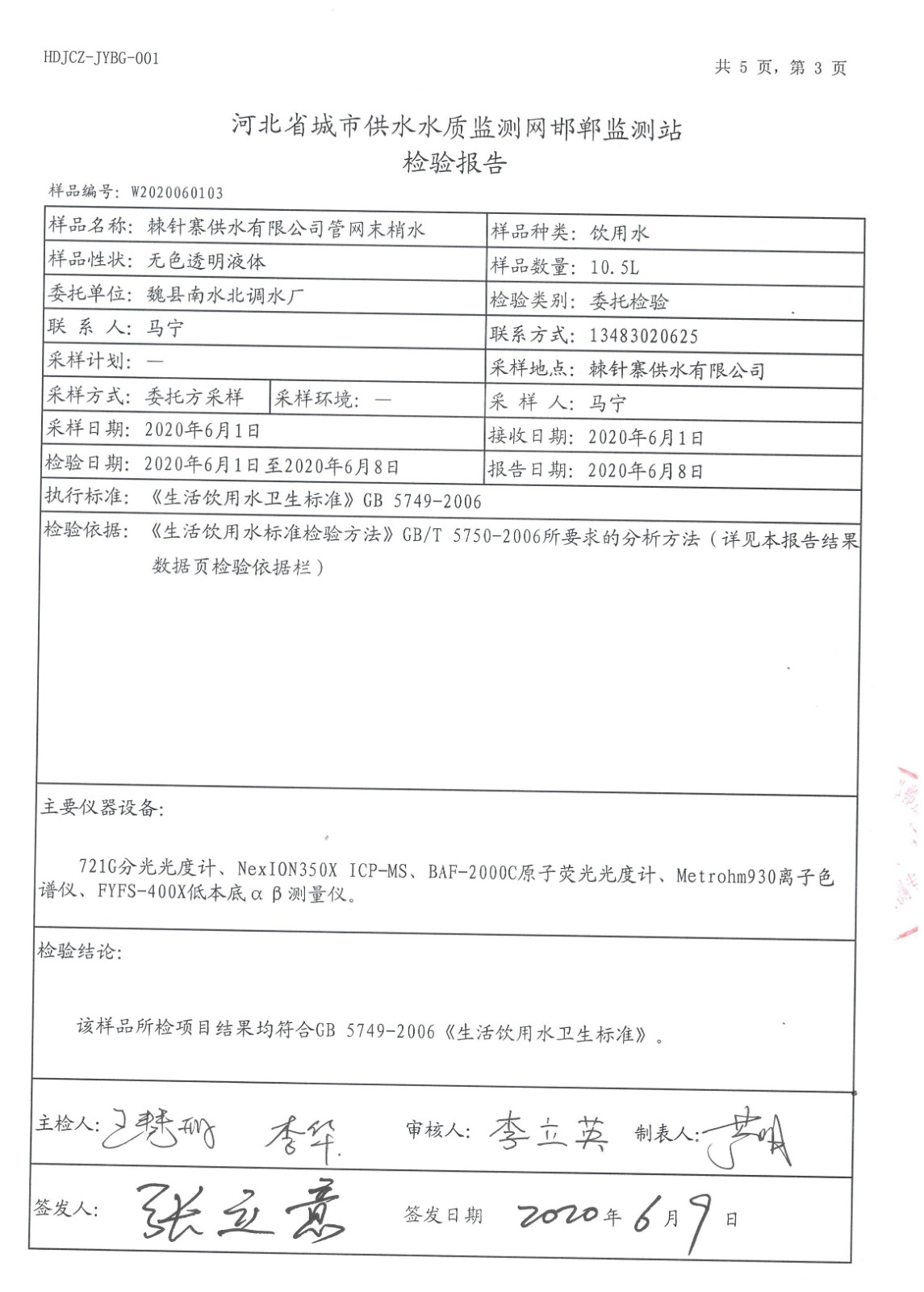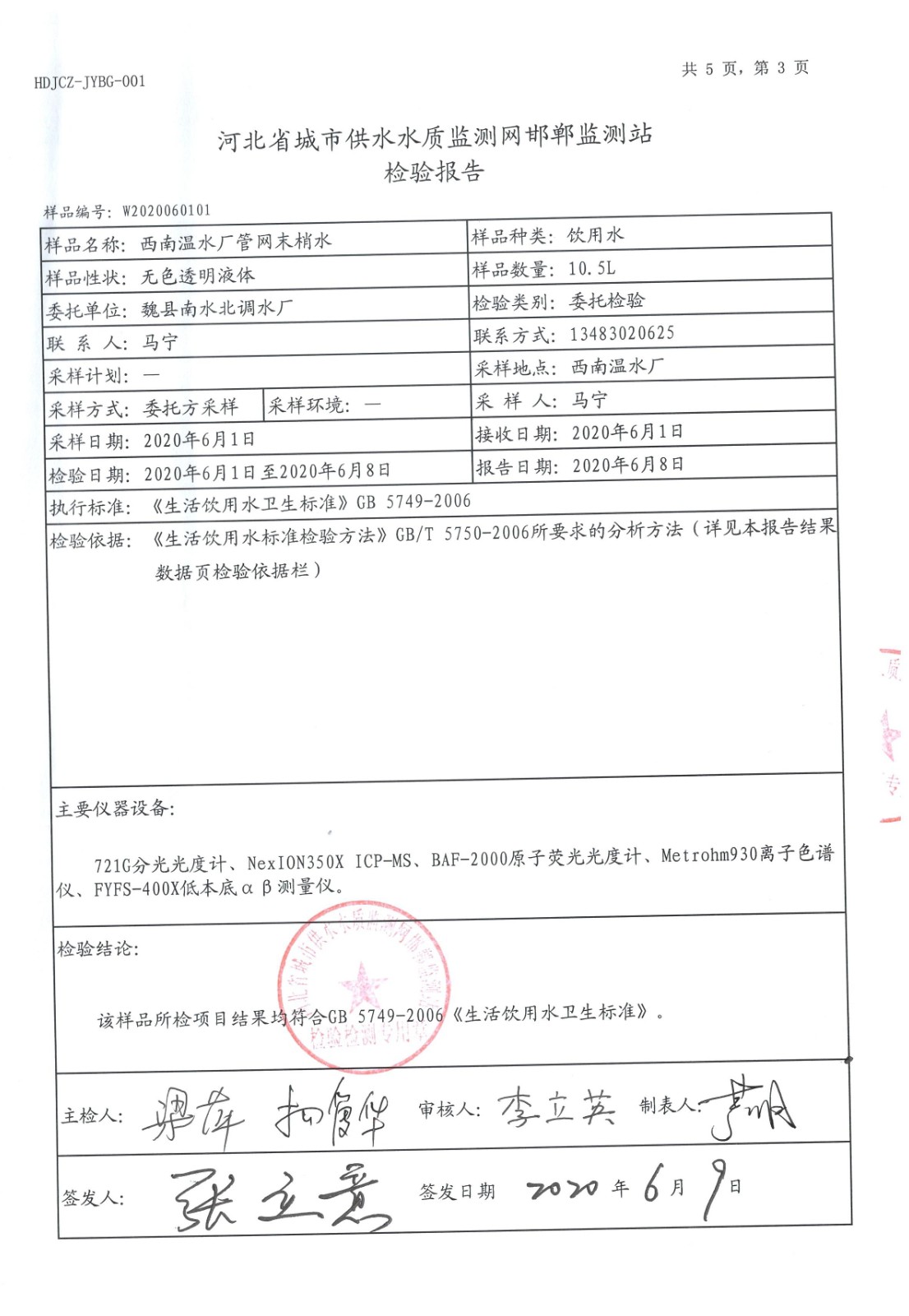 名稱(chēng):2020年第二季度水質(zhì)檢測(cè)信息