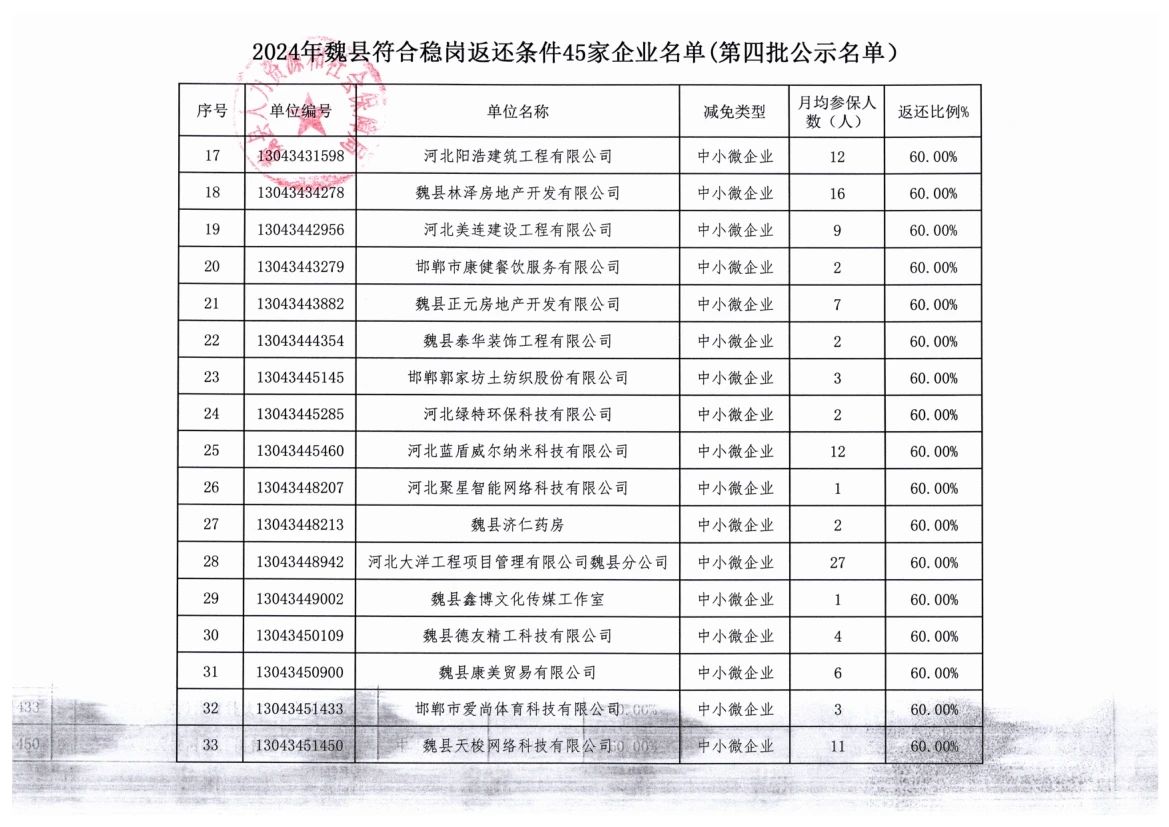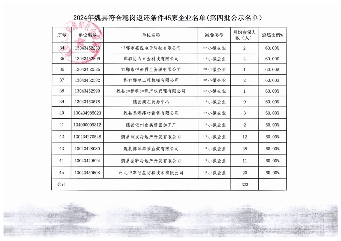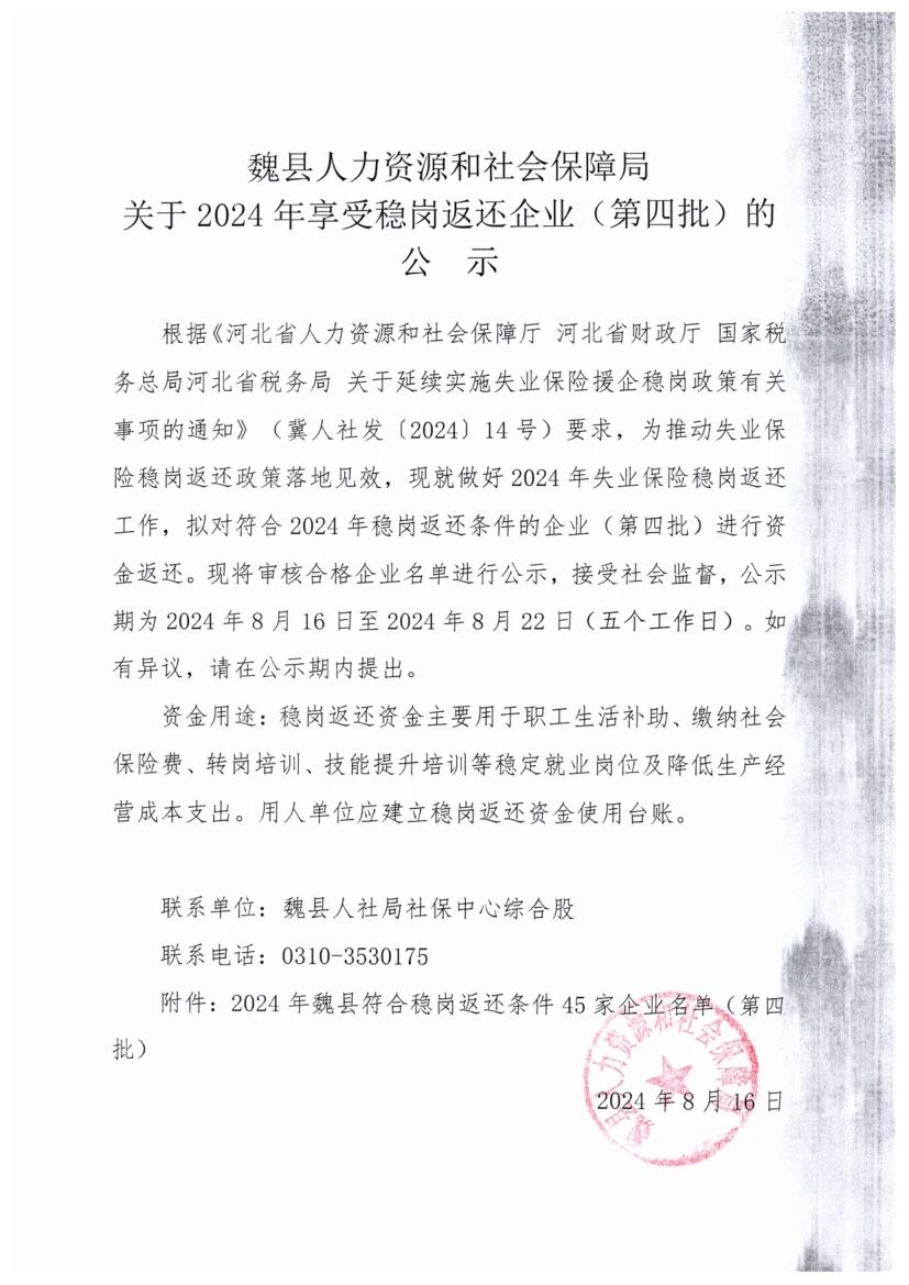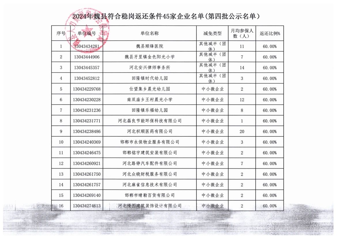 名稱:關于2024年享受穩(wěn)崗返還企業(yè)(第四批)的公示