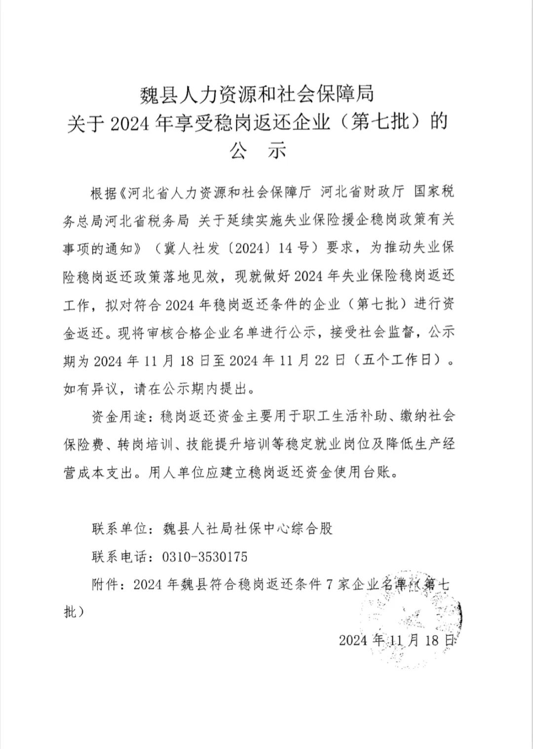 名稱:關于2024年享受穩(wěn)崗返還企業(yè)(第七批)的公示